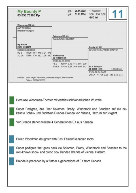 7 Polled Woodman daughter with East Frisian/Canadian roots.