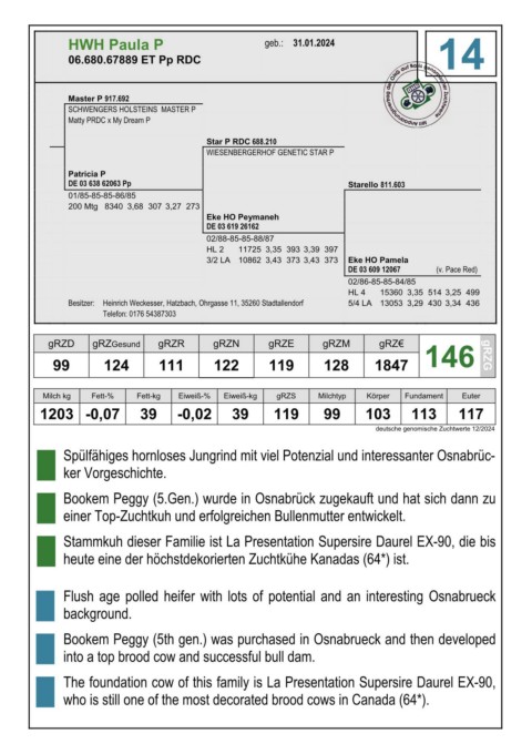 7 Flush age polled heifer with lots of potential and an interesting Osnabrueck