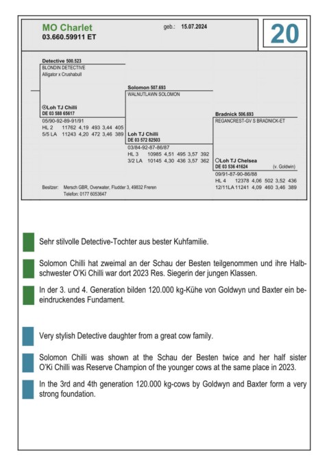 7 Solomon Chilli was shown at the Schau der Besten twice and her half sister